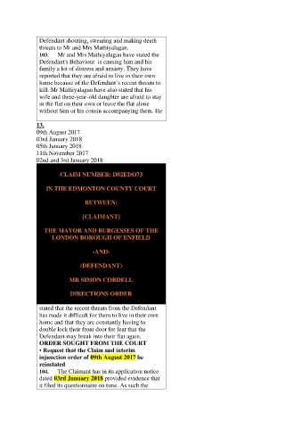 stated that the recent threats from the Defendant