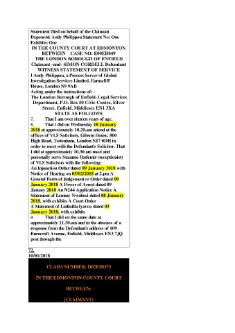 WITNESS STATEMENT OF SERVICE