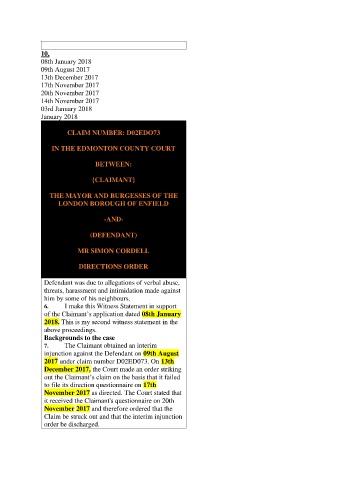 injunction against the Defendant on 09th August