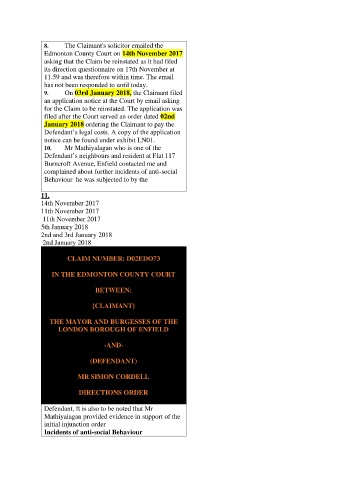 8. The Claimant's solicitor emailed the
