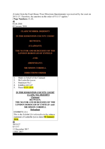 A Letter from the Court House /Your Directions Questionnaire was received by the court on
