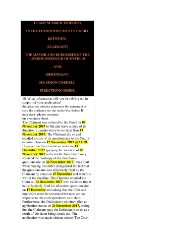 The Claimant was ordered by the Court on 06