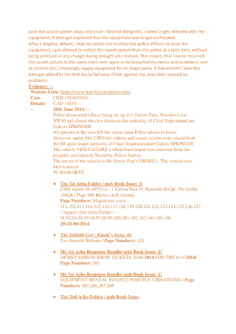 equipment, I got allowed to collect the sound system from the police at a later date, without