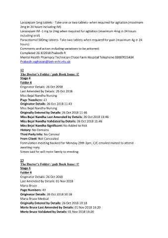Lorazepam IM -1 mg to 2mg when required for agitation (maximum 4mg in 24 hours