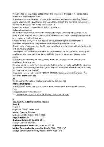 then arrested for assault to a police officer. This charge was dropped in the police station