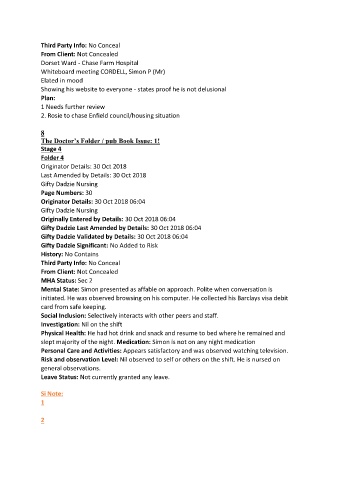 Mental State: Simon presented as affable on approach. Polite when conversation is