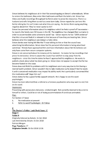 Simon has been informed that a referral to a forensic psychiatrist who may want to visit him