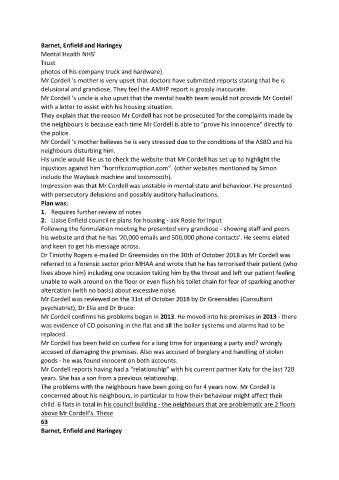 Impression was that Mr Cordell was unstable in mental state and behaviour. He presented