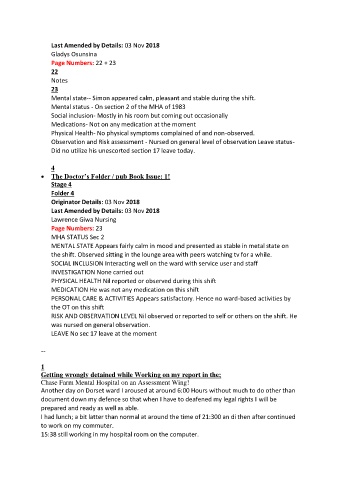 RISK AND OBSERVATION LEVEL Nil observed or reported to self or others on the shift. He