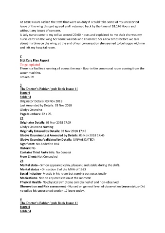 Observation and Risk assessment - Nursed on general level of observation Leave status- Did