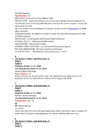Simon refused to be assessed earlier today. He explained that his admission was not