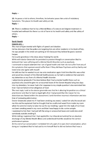 and would be a breach of the Mental Health process as he had no evidence that warrants