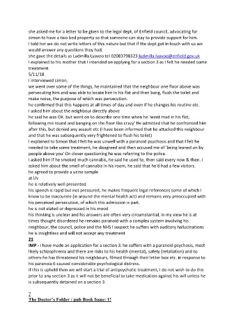 I explained to Simon that I felt he was unwell with a paranoid psychosis and that I felt he