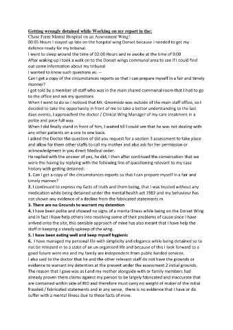 days events, I approached the doctor / Clinical Wing Manager of my care treatment in a