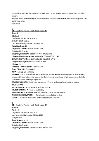 MENTAL STATE: Simon has maintained a low profile. Remains relatively calm on the ward,