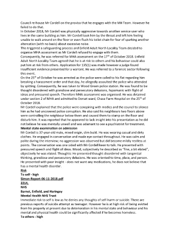 Consequently, he was referred for MHA assessment on the 17 of October 2018. Enfield