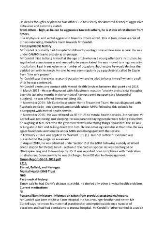 Mr Cordell denies any contact with Mental Health Services between that point and 2014.