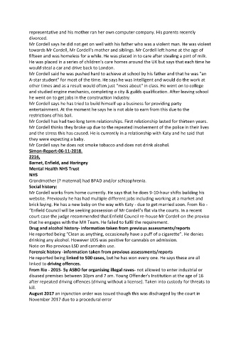 towards Mr Cordell, Mr Cordell's mother and siblings. Mr Cordell left home at the age of