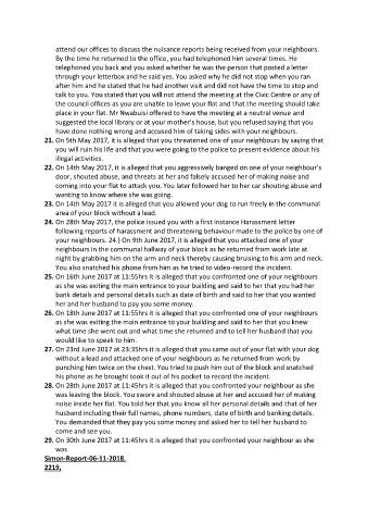 26. On 18th June 2017 at 11:55hrs it is alleged that you confronted one of your neighbours