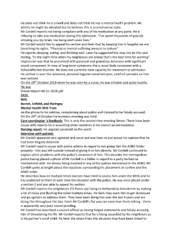 He describes how on multiple times doctors have tried to assess him under the MHA and he