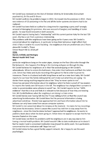 having a mental health problem. Mr Cordell wouldn’t like to take medication as he doesn’t