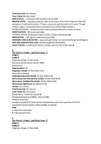 SOCIAL INCLUSION: -- Interacting well on the ward and utilised his section 17 leave.