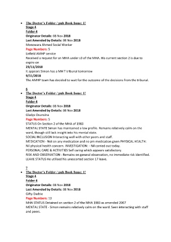 MENTAL STATE - Simon remains relatively calm on the ward. Seen interacting with staff