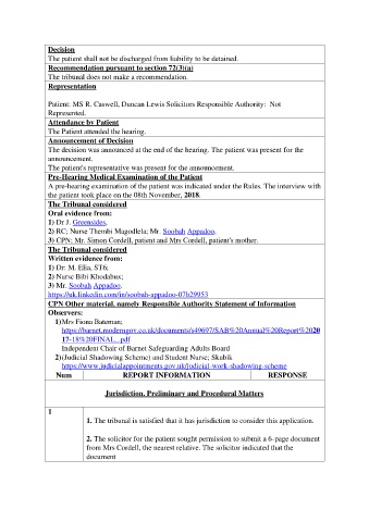 Patient: MS R. Caswell, Duncan Lewis Solicitors Responsible Authority: Not