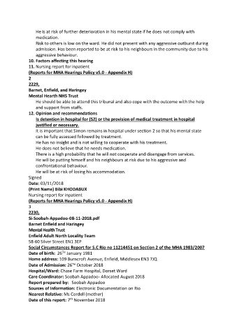 Social Circumstances Report for S.C Rio no 11214451 on Section 2 of the MHA 1983/2007