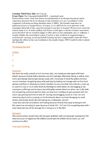 Entries below noted. I note that Simon was documented to be thought disordered and to