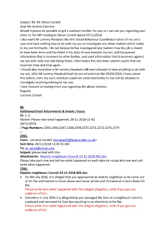 letter to the MP relating to Simon Cordell dated 07/11/2018.