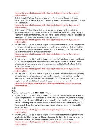 • On 30th June 2017 at 11:45hrs it is alleged that you confronted your neighbour as she