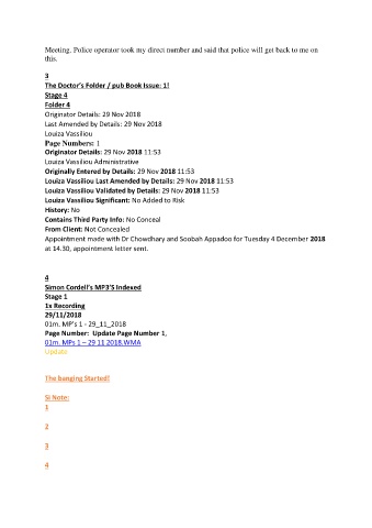 Meeting. Police operator took my direct number and said that police will get back to me on