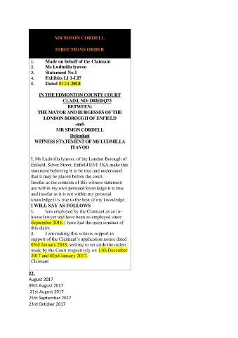1. Made on behalf of the Claimant
