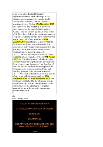 2017, the Defendant’s anti-social behaviour has