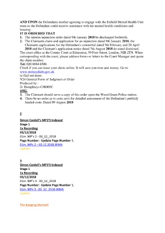3. The Claimant should serve a copy of this order upon the Wood Green Police station.