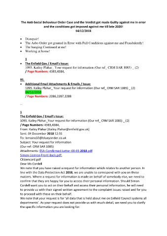 • The Asbo Order got granted in Error with Full Conditions against me and Fraudulently!