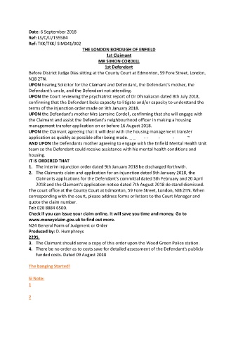 3. The Claimant should serve a copy of this order upon the Wood Green Police station.