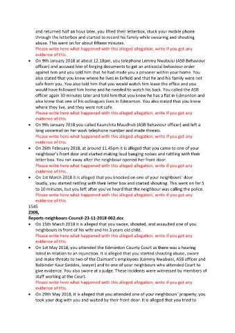 • On 9th January 2018 at about 12.18pm, you telephone Lemmy Nwabuisi (ASB Behaviour