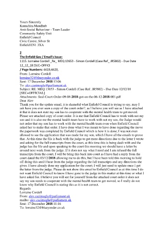 the letter from the judge. Please do not show this email to Enfield Council as at this time I do