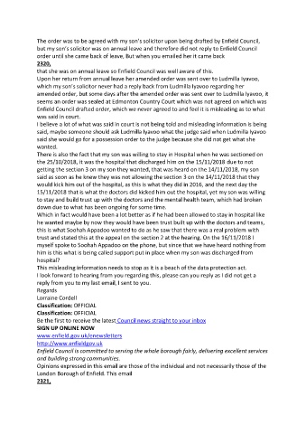 The order was to be agreed with my son’s solicitor upon being drafted by Enfield Council,