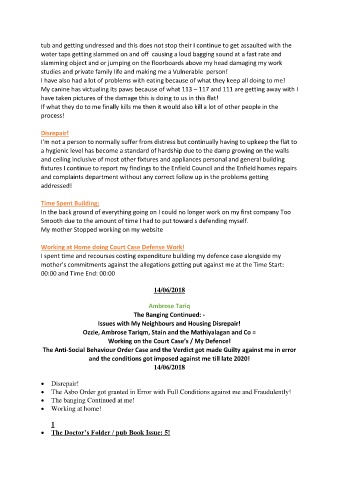tub and getting undressed and this does not stop their I continue to get assaulted with the