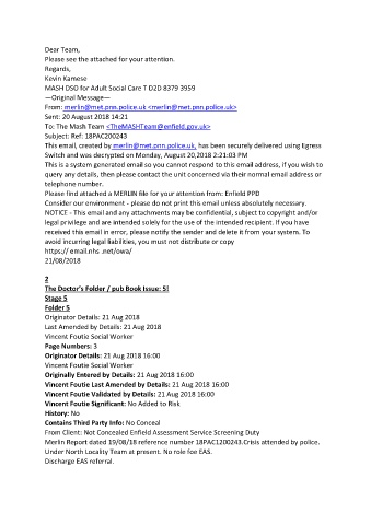 Please find attached a MERLIN file for your attention from: Enfield PPD