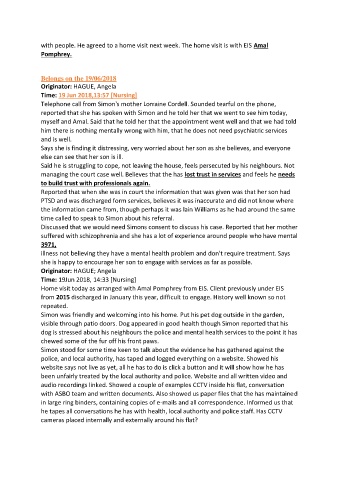 Home visit today as arranged with Amal Pomphrey from EIS. Client previously under EIS