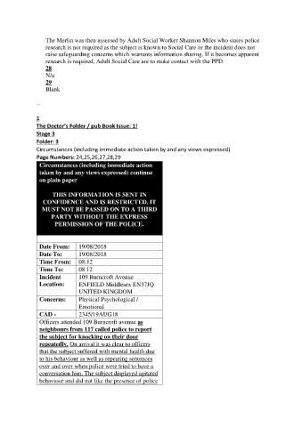 The Merlin was then assessed by Adult Social Worker Shannon Miles who states police