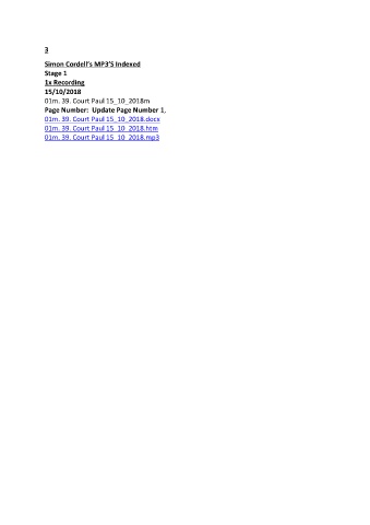 3 Simon Cordell’s MP3’S Indexed Stage 1 1x Recording 15/10/2018 01m. 39. Court Paul 15_10_2018m Page Number: Update Page Number 1, 01m. 39. Court Paul 15_10_2018.docx 01m. 39. Court Paul 15_10_2018.htm 01m. 39. Court Paul 15_10_2018.mp3
