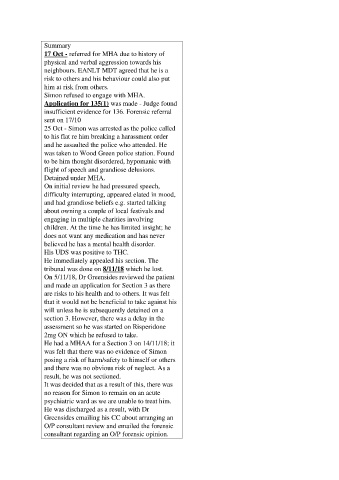 17 Oct - referred for MHA due to history of