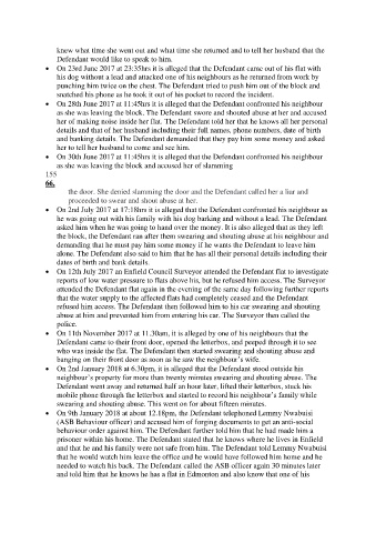 • On 2nd July 2017 at 17:18hrs it is alleged that the Defendant confronted his neighbour as