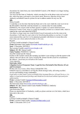 discontinue the claim from your clients Enfield Council, so Mr Ahmed is no longer dealing