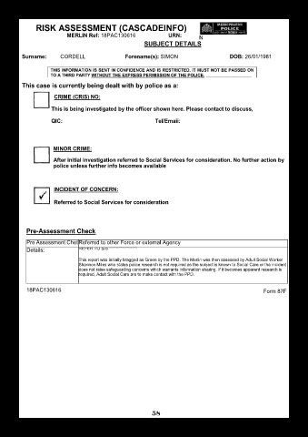 Surname: CORDELL Forename(s): SIMON DOB: 26/01/1981